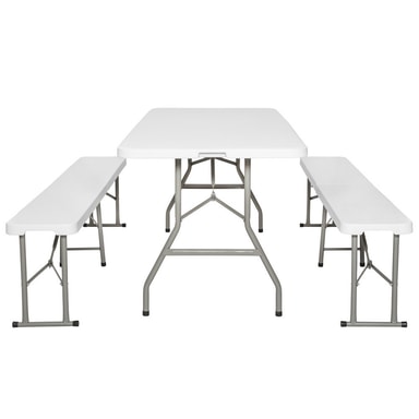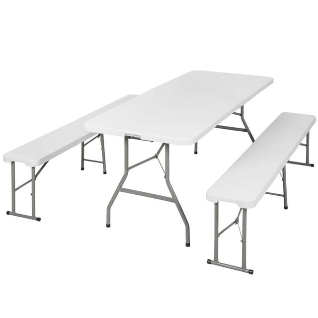 Tämä on erittäin vakaa retkeilysetti, joka koostuu kokoontaitettavasta pöydästä ja kahdesta kokoontaitettavasta penkistä. Retkeilysetti voidaan pystyttää muutamassa sekunnissa, se on erittäin vakaa ja vaatii kokoontaitettuna vain vähän säilytystilaa. Kätevä setti sopii täydellisesti perheen ulkoilmapiknikille, sillä se tarjoaa suuren vakauden ja runsaasti tilaa. Metallirungossa on suojaavat muovijalat, joten setti sopii käytettäväksi myös asuntovaunussa tai keittiössä. Tectaken uuden kokoontaitettavan pöytä- ja tuolisarjan avulla mikään ei voi estää spontaania retkeilyä tai grillijuhlia.