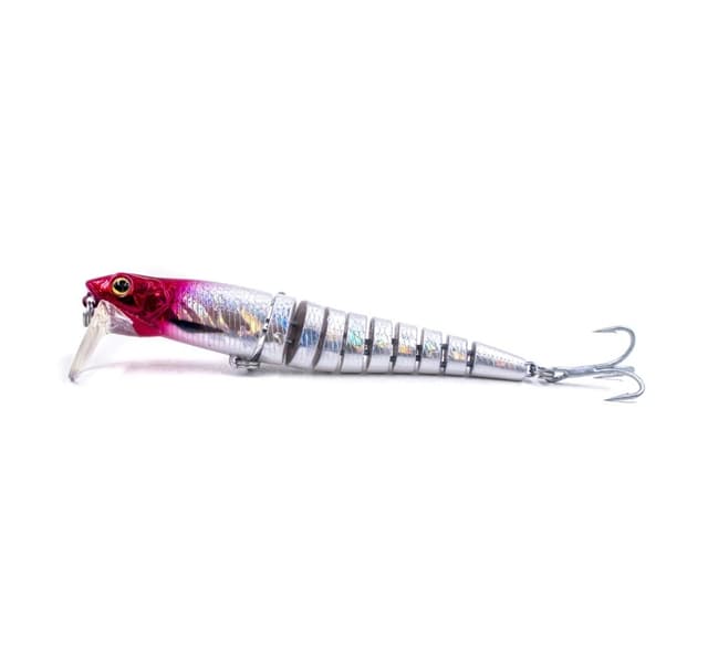 Vieheen osat on kiinnitetty jäykästi toisiinsa vahvistusmateriaalilla polkupyörän ketjulenkkien periaatteella, minkä ansiosta viehe on kestävämpi isojen kalojen pyydystämiseen ja vieheen peli on realistisempaa. Tekniset ominaisuudet: malli EG-056B Kelluvuussukelluspaino 31,6 g pituus 12 cm. vetolujuus 12 kg. koukku VMC kolmoset №2 väri # XS104