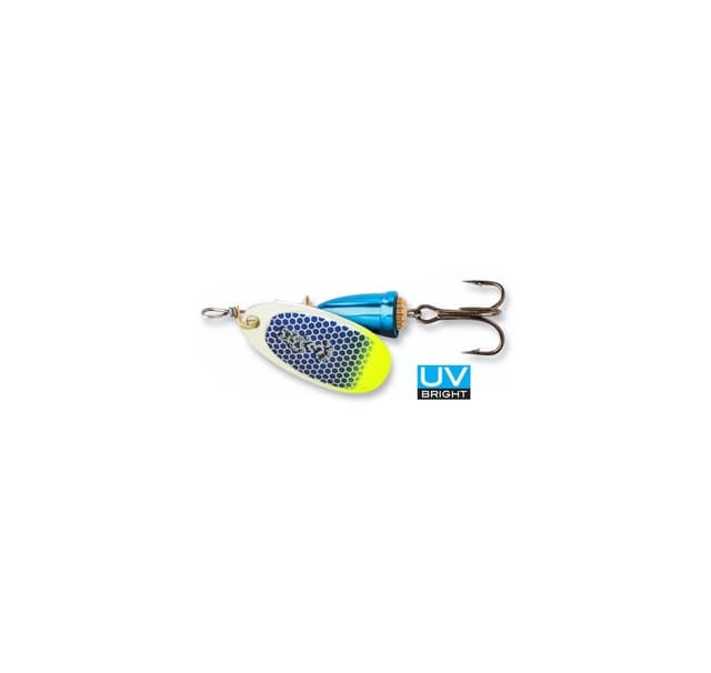 Jotkut tutkijat ovat ehdottaneet, että UV-valo on erittäin näkyvää kaloille, minkä vuoksi olemme lisänneet UV-hiukkasia Vibrax® UV:n maalipintaan. Patentoitu kaksiosainen runko, joka käytännössä eliminoi linjan kiertymisen, erottaa kaikki Blue Fox -spinnerit muista. Tämä matalataajuuksinen spinner luo iskujen laukaisemiseen tarvittavan melun ja tärinän, heitettiinpä sitten pysähdyksissä petoja, kuten ahvenia ja turkua, tai työskentelet nopeasti liikkuvissa joissa taimenen ja lohen parissa.