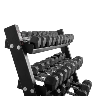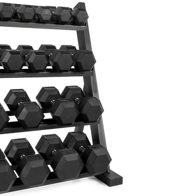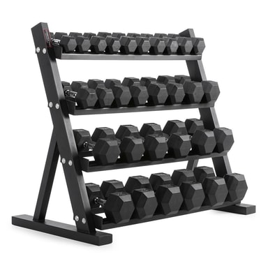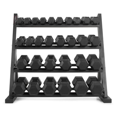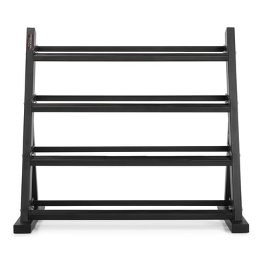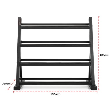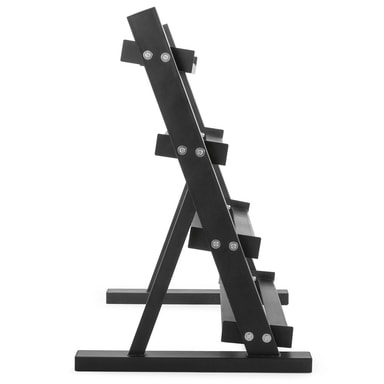 Tukeva teräsrunkoinen käsipainoteline kuntosalikäyttöön. Tähän telineeseen sopii usean malliset käsipainot. Kulmaan asetetut tasot mahdollistavat helpon käytettävyyden ja turvallisen käsipainojen säilyttämisen. 4 tasoa tarjoavat runsaasti tilaa lukuisille käsipainoille. Teline on valmistettu Suomessa.