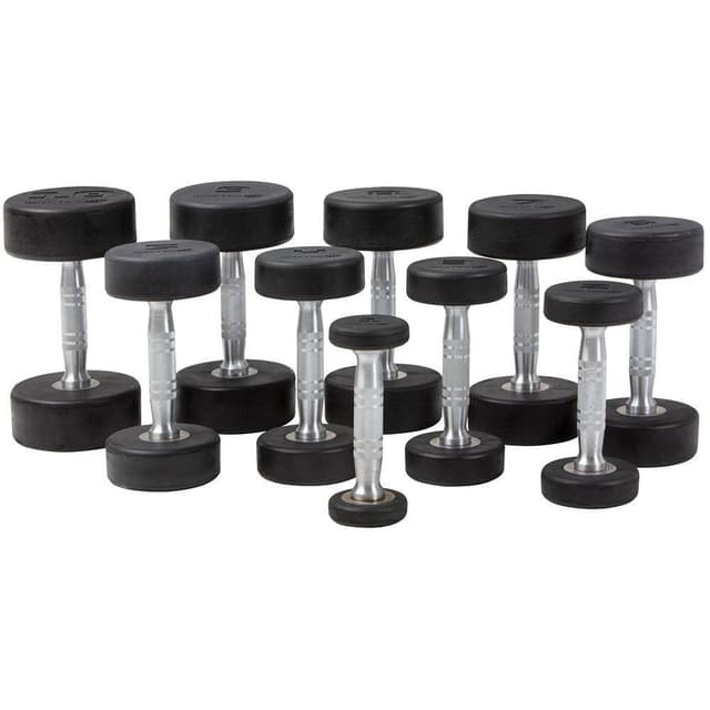 Pyöreät kumipainot, joiden sisus on valmistettu 100 % teräksestä. Ruostumattomasta teräksestä valmistettu kahva. 1-10 kg:n setti laatikossa. Kaksi käsipainoa per paino sisältyy. Käsipainoissa on ergonomisesti muotoiltu kahva ja ne ovat keskeltä paksuimmat. Myydään kappaleittain. (1-10 kg:n settiä lukuunottamatta)