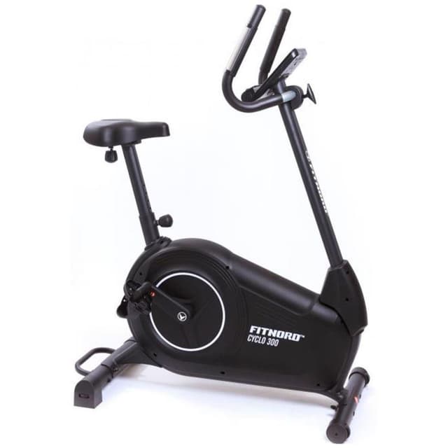 FitNord Cyclo 300 -kuntopyörä on oikea valinta, kun etsit tyylikästä, tukevarunkoista kuntopyörää hyvällä polkutuntumalla. Laitteen vahvuudet ovat erityisen tukeva runko, edistyneet treeniohjelmat, helppokäyttöinen näyttöpaneeli ja tyylikäs virtaviivainen muotoilu. FitNord Cyclo 300-kuntopyörän satulaa voi säätää korkeussuunnan lisäksi myös eteen ja taakse, joten miellyttävä treeniasento löytyy monen mittaisille polkijoille. Käsikahvoissa sijaitsevat sykeanturit ovat pitkät, joten käsiä ei tarvitse erikseen asetella tiettyyn kohtaan sykkeen selvittämiseksi. Cyclon satula on hiukan tavallista kuntopyörän satulaa kovempi ja muotoillumpi, joten istumistuntuma on erittäin miellyttävä. Cyclo 300 -kuntopyörän siirtäminen on vaivatonta edessä olevien siirtopyörien avulla. Ohjelmia on yhteensä 13, johon sisältyy neljä itse ohjelmoitavaa treeniä. Hintaluokassaan poikkeuksellisena ominaisuutena on 4 kpl sykeohjelmia, joissa vastus säätyy automaattisesti sykkeen mukaan. Tämä mahdollistaa tehokkaan ja nousujohteisen aerobisen kunnon kehityksen, eikä samalle vastustasolle tule jämähdettyä kunnon kasvaessa! Fitnord Cyclo 300:n ominaisuuksia: Tukevuus ja vakaus Hyvät säätömahdollisuudet Helppokäyttöinen näyttöpaneeli Sykkeen mukaan automaattisesti säätyvät ohjelmat Hyvien säätömahdollisuuksien FitNord Cyclo 300 sopii kaikentasoisille ja -ikäsille kuntoilijoille. Kannattaa muistaa, että kone ei koskaan seiso täysin paikallaan käytön aikana, joten lattia voi vaurioitua, vaikka koneessa on ""jalat"". Monet ihmiset hikoilevat ja läikyttävät vettä harjoitusten aikana, mikä voi vahingoittaa lattiaa, jos se on herkkä kosteudelle. Kuntolaite voi olla herkkä staattiselle sähkölle. Tämän takia suosittelemme alusmaton käyttöä, joka antaa hyvän suojan.