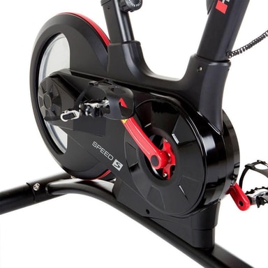 Harjoituspyörä LCD-näytöllä ja Bluetoothilla treenisovelluksia varten. Sport-vaihteisto: vastuksen nopea säätö nopeisiin siirtymisiin harjoittelun aikana Kahdeksanportaisen pikavaihteiston avulla voit vaihtaa haluamasi vastuksen erittäin nopeasti ja joustavasti. Speed Racer S -pikavaihtojärjestelmä on erittäin pehmeä verrattuna yksinkertaiseen säätämiseen nupilla. Voit treenata eri tasoilla tarkalla vastuksella ja parantua valitsemalla korkeamman vastuksen seuraavalla harjoituskerralla. Hätäpysäytysvipu pysäyttää vauhtipyörän nopeasti ja tarjoaa maksimaalisen turvallisuuden. Sporttinen mukavuus Speed Racer -mallissa on pehmeä pehmuste käsinojissa parhaan paineensietokyvyn takaamiseksi. Koko moniasentoisessa ohjaustangossa on erittäin mukava ja hikeä hylkivä pinta, joka tuntuu hyvältä myös pitkien ja rankkojen istuntojen jälkeen. Voit helposti pyyhkiä kahvat kostealla liinalla treenin jälkeen. Sykkeelläsi on väliä Haluatko haastaa itsesi, parantaa kuntoasi ja todella tehostaa? Silloin Speed Racer sopii sinulle täydellisesti, mutta sinun on aina pidettävä silmällä harjoitussykettäsi. Uudella harjoituspyörälläsi voit mitata sykkeesi lisävarusteena saatavan rintavyön avulla. Mukana toimitetaan vastaanotin, joten voit käyttää rintahihnaa heti. Säädettävät urheilupolkimet Harjoittelu kilpapyörän yksityiskohdilla Speed Racer S:ssä on säädettävät, litteät polkimet, joissa on erittäin hyvä pito ja joita voi käyttää urheilukenkien kanssa. Urheilupolkimet ovat liukumattomat ja tarjoavat maksimaalisen mukavuuden ja vakauden myös pidempien harjoitusten aikana, olipa kyseessä sitten hitaampi cardio- tai kovempi nopeusharjoittelu.Täydellinen simulointi ja valmistautuminen seuraavaan pyöräilykauteen Molemmissa polkimissa on säädettävä korkki, joka voidaan myös irrottaa. Vakiopituus kampiakselissa on 20 cm. 22 kg:n vauhtipyörän paino: hiljainen ja harmoninen pyörimisliike Uuden Speed Racer S:n tekniikka 22 kg:n vauhtipyörän painolla, ratajarruvetoisella voimansiirrolla ja ammattimaisella kuulalaakerointitekniikalla tarjoaa haastavia nopeatempoisia harjoittelujaksoja ilman luistoa. Täydellinen pyörivä liike on hellävarainen nivelille ja kannustaa uusiin huippusuorituksiin. Saat paljon dynamiikkaa eikä häiritsevää melua, joten voit keskittyä täysin harjoitteluun häiritsemättä itseäsi tai naapureita. Tämä tarkoittaa, että voit treenata häiriöttä televisiota katsellessasi mihin vuorokaudenaikaan tahansa. Vedestä riippumaton nopeusharjoittelu kotona olohuoneessa Etsitkö erityisen intensiivistä sydänharjoittelua ja haluat hikoilla myös kotona treenatessasi? Silloin HAMMER Speed Racer S -kuntoilupyörä on itsestään selvä valinta sinulle. Sisäpyöräily on suositumpaa kuin koskaan. Yhdistä älypuhelin tai tabletti yhteensopiviin treenisovelluksiin, kuten Iconsole, Kinomap tai Bitgym, Bluetoothin kautta. Treenaa GoogleMaps-sovelluksen avulla ja koe maailman kauneimmat kierrokset! Viisi-ikkunainen LCD-näyttö seuraa harjoitustietojasi! Seuraa harjoitustietojasi integroidulla LCD-näytöllä. Se näyttää nopeuden, ajan, matkan, kulutetut kalorit ja sykkeen. Sykeohjelma lisää turvallisuutta harjoittelun aikana, koska voit asettaa maksimisykkeen ylärajan. Jos raja ylittyy, kuuluu äänimerkki.Näin voit treenata terveellisesti myös intensiivisten harjoitusten aikana. Multimediaviihteen Bluetooth-tekniikka Nauti multimediaviihteestä ja treenimotivaatiosta ammattitasolla! Sen lisäksi, että voit katsella videoita YouTubesta tai suorittaa korkeaintensiivisiä harjoituksia suosikkimusiikkisi tahtiin, voit lähteä motivoivalle elämänmatkalle älypuhelimen tai tabletin treenisovellusten avulla. Se tekee harjoittelusta aidompaa ja pitää sinut motivoituneena. Kytke vain tablettisi tai älypuhelimesi kuntotietokoneeseen ja laita se pidikkeeseen! Maksimaalisesti säädettävissä lähes kaikkiin vartalon pituuksiin sekä korkeampiin painoluokkiin Speed Racer S on yhtä ergonomisesti sopiva sekä pitkille, jopa 2 metrin pituisille ihmisille että hoikemmille 155 cm:stä alkaen. Kuntopyörän ohjaustankoa voidaan säätää 12 cm pystysuunnassa 4 asentoon. Ergonomisen satulan kallistusta ja korkeutta voidaan säätää (20 cm 10 asennossa). Voit myös siirtää sitä vaakasuunnassa (10 cm portaattomasti) pikasäätöpainikkeella. Kuntopyörän urheilukahvoissa on myös eri asentoja kahvoille, joten ne sopivat sekä ihmisille, joilla on pidemmät että lyhyemmät kädet. Uusi Speed Racer S -harjoituspyöräsi kestää helposti jopa 130 kg:n kuormituksen. Laatua HAMMER:lta! Erittäin vakaa, tukeva, liikkuva ja testattu maksimaalisesti Korkeustasoa voidaan säätää neljästä tukipisteestä, jos alusta on epätasainen, ja kaksinkertaiset teolliset hitsaussaumat takaavat ehdottoman vakauden ja vakauden myös kovien harjoitusjaksojen aikana, kun nouset seisomaan ja pyöräilet. Painavammatkin urheilijat harjoittelevat turvallisesti ilman, että pyörä muuttuu epävakaaksi. Speed Racer S:n vauhtipyörätekniikka on laadultaan testattu 100 000 kierroksen kierroksella,mikä takaa pitkän kestävyyden. Treenin jälkeen voit helposti rullata Speed Racer S:n pois kahden integroidun kuljetuspyörän ansiosta. Kannattaa muistaa, että kone ei koskaan seiso täysin paikallaan käytön aikana, joten lattia voi vaurioitua, vaikka koneessa on ""jalat"". Monet ihmiset hikoilevat ja läikyttävät vettä harjoitusten aikana, mikä voi vahingoittaa lattiaa, jos se on herkkä kosteudelle. Kuntolaite voi olla herkkä staattiselle sähkölle. Tämän takia suosittelemme alusmaton käyttöä, joka antaa hyvän suojan.