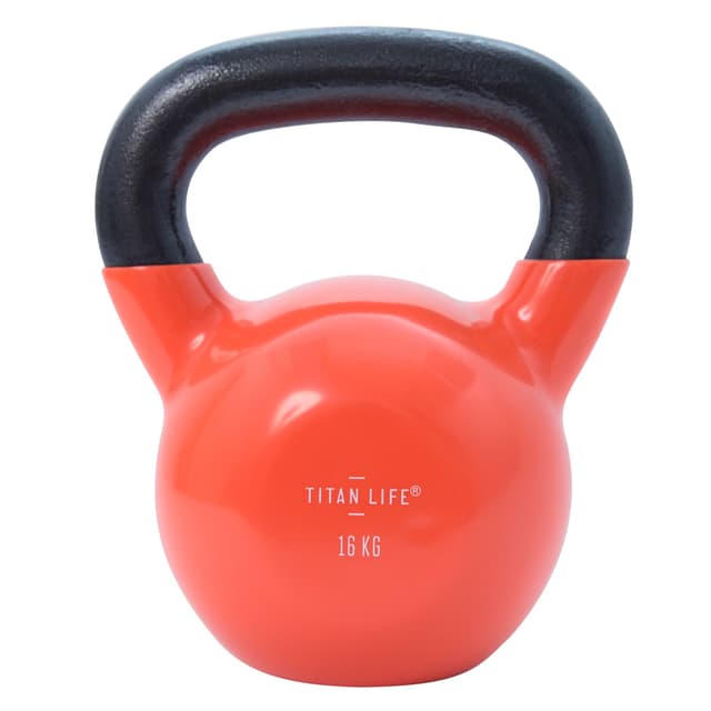 TITAN LIFE Kettlebell er velegnet til din hjemmetræning såvel som et professionelt fitnesscenter. Denne kettlebell er produceret i slidstærkt støbejern og har en vinyl overflade, som har en praktisk funktion. Vinyl overfladen