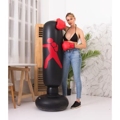 JY-0166 160 cm vapaasti seisova nyrkkeilypylväs puhallettava nyrkkeilysäkki Fitness Training - musta【Kestävä puhallettava muotoilu】 Valmistettu 0,3 mm paksusta PVC-materiaalista, tämä nyrkkeilysäkki on valmistettu kestämään intensiivistä harjoittelua