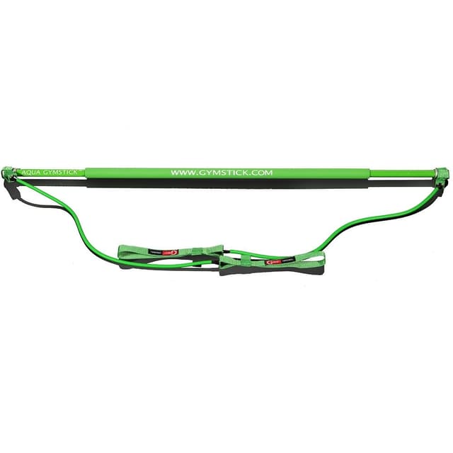 Gymstick Aqua -jumppakeppi toimii kuten tavallinen Gymstick Original, mutta se on tarkoitettu veteen. Kuminauhat ovat valmistettu kestämään allasvettä ja jalkalenkeistä löytyvät kiristimet. Gymstick aqua mahdollistaa vesijumpissa ja vesiliikunnassa lukemattoman määrän liikkeitä. Veden vastus yhdistettynä kuminauhan vastukseen takaa tehokkaat harjoitukset eri kehon asennoissa ja liikesuunnissa. Gymstick Aqua sopii uimahalleihin, vesijumppiin ja kotiharjoitteluun esimerkiksi mökille. Tuotetiedot Lasikuituinen jumppakeppi, pituus 130 cm Vedenkestävä vaahtomuovipehmuste kepin ympärillä 2 kpl lateksista vedenkestävää vastuskuminauhaa Keppiä ja kuminauhoja voi käyttää sekä yhdessä että erikseen Tyylikäs kankainen kanto- ja säilytyskassi Vastukset: Kevyt , vihreä - kevyt vastus 1-10 kg. (ikääntyvät ja kuntoutus) Medium , sininen - keskivahva vastus 1-15 kg. (kuntoilijat / naiset) Strong , musta - vahva vastus 1-20 kg. (aktiivisesti kuntoilevat naiset ja aloittelevat miehet) Extra Strong , hopea - erittäin vahva 1-25 kg. (urheilijat) Super Strong , kulta - super vahva 1-30 kg. (aktiiviurheilijat)
