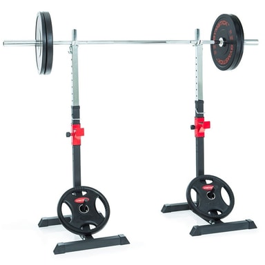 Monipuolinen kyykky- ja punnerrusteline on suunniteltu kotikäyttöä varten, missä tilan maksimointi on erityisen tärkeää. Kyykkyteline on helppo siirtää paikasta toiseen eikä vaadi pulttikiinnitystä lattiaan. Sen tukevat jalat on varustettu suurella pohjalaatalla, joten se on tukeva ja turvallinen. Tämä kyykkyteline soveltuu käytettäväksi sellaisenaan tai loistavasti myös penkin kanssa. Tuotteessa on korkeussäätö ja se sisältää myös säädettävät turvatelineet. Rungon alaosasta löytyy levypainojen pidikkeet, kuten myös pituussäädettävät lattiajalat tuoden tarvittaessa lisää vakautta telineisiin. Tuotetiedot Tukeva rakenne. Helppokäyttöinen. Mitat 54 x 52 x 106-164cm. Maksimikuorma 150kg. Paino 19,5kg.