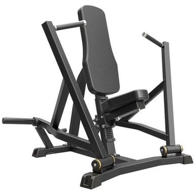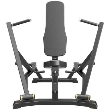 Uskomattoman hintansa arvoinen ja tilatehokas rintaprässi – on Impulsen malli IFP1201. Laitteeseen lisätään vain vapaita painolevyjä, joiden aukon halkaisija on 50 mm. Istuimen korkeutta säädetään helposti – ja koska siinä on palautusjousi, se voidaan säätää vain yhdellä kädellä. On mahdollista rajoittaa, kuinka pitkälle taaksepäin kahvat voivat liikkua. Tämä takaa täyden liikkuvuuden kaikille ja vähentää samalla loukkaantumisriskiä, jos ei haluta maksimaalista liikelaajuutta. Liikerata on ergonomisesti maksimoitu rintalihasten täysipainoiseen hyödyntämiseen. Mukana on myös pieniä yksityiskohtia, kuten koukut vastuskumeille, jos halutaan vastusta liikeradan eri osiin. IFP on erittäin pätevä sarja plateloaded-laitteissa. Materiaalin paksuus: 2,5 ja 3 mm