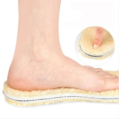 Lämmin ja viihtyisä: Pidä jalkasi lämpiminä ja viihtyisinä kylmällä säällä näillä lampaanvillapohjallisilla. Pehmeä ja muhkea lampaanvillamateriaali tarjoaa erinomaisen eristyksen, joka sitoo lämpöä ja estää jalkojasi kylmettymästä. Nämä pohjalliset sopivat täydellisesti talviaktiviteetteihin, ulkoiluun tai yksinkertaisesti mukavana oleskeluun sisätiloissa. Hengittävä lampaanvillamateriaali auttaa myös siirtämään kosteutta pois pitäen jalkasi kuivina ja raikkaina koko päivän. Koe äärimmäistä lämpöä ja mukavuutta näillä lampaanvillapohjallisilla, jotka varmistavat, että jalkasi pysyvät onnellisina ja suojattuina sääolosuhteilta.