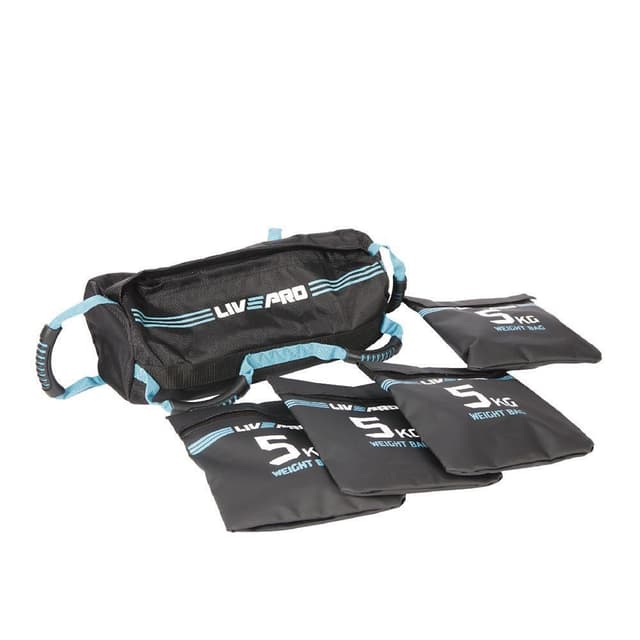 Kehitä kokonaisvaltaista kehon voimaa, tasapainoa sekä kestävyyttä Livepro harjoitussäkin avulla. Tämä monipuolinen harjoitussäkki tarjoaa mahdollisuuden useisiin erillaisiin harjoitteisiin, niin sisätiloissa kuin myös ulkona. Hiekkasäkin mukana tulevilla painopusseilla voit helposti säätää kokonaispainoa itselle sopivaksi. Voit myös kätevästi tehdä harjoitteita yksittäisillä painopusseilla. Painopussit voidaan täyttää 5 kiloon asti hiekalla ( tuotepakkaus ei sisällä hiekkaa ). Säkin painoa on helppo säädellä 1-20kg välillä. Harjoitussäkki valmistettu 1000D armeijatason nylonista, joka antaa sille erinomaisen kestävyyden. Kuuden eri kahvan avulla voit tehdä monipuolisia harjoitteita eri otteilla. Tekniset tiedot: Erittäin kestävä rakenne. Valmistettu 1000D armeijatason nylonista. 6 otekahvaa. Vettä ja likaa hylkivä pinta mahdollistaa helpon puhdistamisen. Vahvat polyester tikkaukset. Säädettävä maksimipaino 1-20kg. Yksittäinen painopussi max 5kg. Itse täytettäviä painopusseja 4kpl.