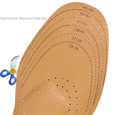 Yleiskoko: Nauti yleiskäyttöisyydestä näillä jalkaholvia tukevilla pohjallisilla, jotka sopivat kengänkoolle 35–46. Selkeät kokoviivat helpottavat leikkaamista täydellisen istuvuuden saavuttamiseksi.