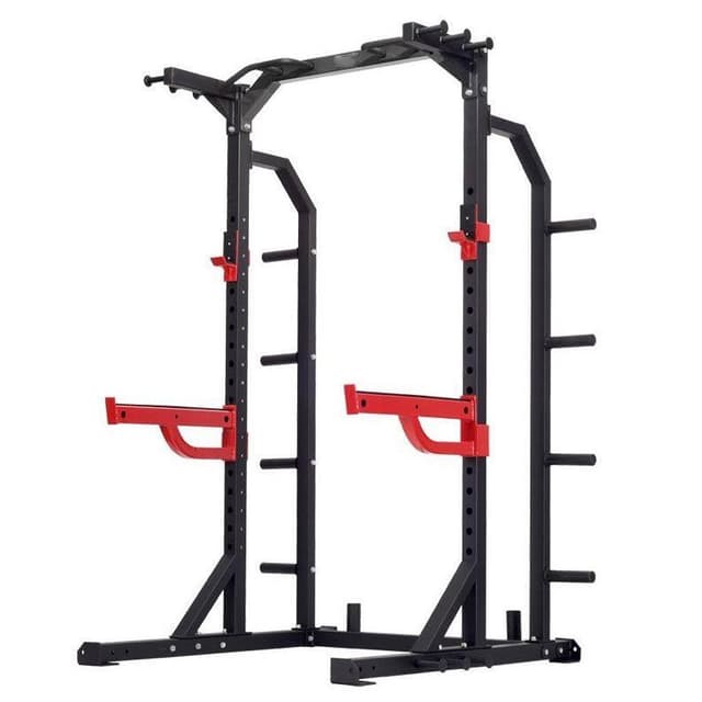 Heavy Duty Half Rackissa on erittäin tukeva runko ja se kestää niin yksityisen kuin kaupallisenkin kovimman käytön. Se on suunniteltu käsittelemään monia eri Crossfit-harjoitteita. Telineessä on MULTI-GRIP Chinbar -leuanvetotanko ja ylhäällä ja alhaalla on kiinnikkeet vastuskuminauhoille. Toimitukseen kuuluu korkeussuunnassa säädettävät turvavarret ja j-hooks -levytangonpidikkeet.
