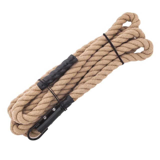 6 metriä pitkä, kestävästä hampusta valmistettu köysi, jossa on lenkki, joka on helppo kiinnittää kattoon tai telineisiin. Kiipeilyköysillä harjoitteleminen on pitkään ollut hyvä tapa kehittää ylävartalon voimaa ja kestävyyttä.