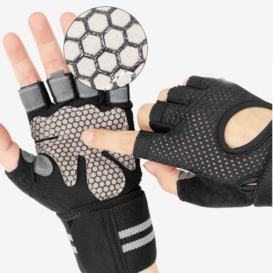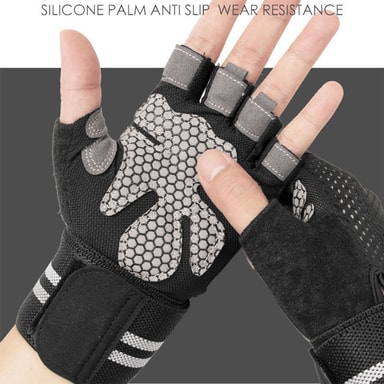 Liukumaton silikonimuotoilu: Käsineet on varustettu silikonisilla paikoilla kämmenellä, mikä tarjoaa erinomaisen pidon ja estää liukumisen harjoittelun tai urheilutoiminnan aikana. Nauti parannetusta vakaudesta ja hallinnasta.