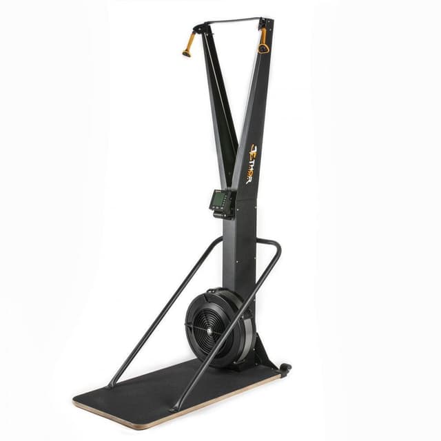 Thor Fitness Air Skier on täydellinen kone sinulle, joka haluat harjoitella kestävyyttä ja voimaa selässä, vatsassa, käsissä ja jaloissa. Kone on valmistettu kaupalliseen käyttöön, mutta soveltuu myös kotiharjoitteluun. Voit käyttää sitä sekä klassiseen vuorohiihtoon että tasatyöntöön. Se sopii niin huippuhiihtäjille, kuin myös sinulle, joka haluat vain kohottaa kuntoa ennen hiihtokautta. Kone on bluethooth-yhteensopiva ja tukee Androidia ja iPhonea, liitä sykemittarit koneeseen ja rekisteröi harjoituksesi sovelluksiisi. Air Skierin mukana tulee vakaa teline, joka tarjoaa hyvän otteen jaloillesi. Kannattaa muistaa, että kone ei koskaan seiso täysin paikallaan käytön aikana, joten lattia voi vaurioitua, vaikka koneessa on ""jalat"". Monet ihmiset hikoilevat ja läikyttävät vettä harjoitusten aikana, mikä voi vahingoittaa lattiaa, jos se on herkkä kosteudelle. Kuntolaite voi olla herkkä staattiselle sähkölle. Tämän takia suosittelemme alusmaton käyttöä, joka antaa hyvän suojan.