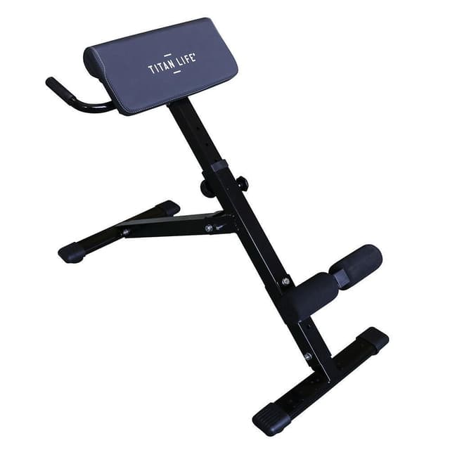 Titanium Hyperextension -selkäteline. Selkäteline erityisesti alaselän harjoitteluun. Ehkäisee monia selkävaivoja. Säädettävän korkeuden ansiosta teline voidaan mukauttaa harjoittelijan pituuden mukaan. Kokoontaitettava ja sivukahvoilla lisätukea varten.