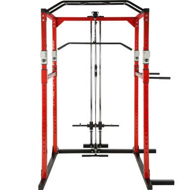 Kohokohdat • Kotivoimisteluasema erilaisilla treenivaihtoehdoilla • Kokemustasoltaan kaikentasoisille • Latvapunnerrus ylä- ja alaveto-tangolla • Kaksoisleuanvetotanko erilaisilla otevaihtoehdoilla • Vakaa, teräsputkirunko • 4 säädettävää, kumilla päällystettyä tangonpidikettä • 2 tukevaa turvatankoa • Lisälaitteena dip-tangot • Suuri kantavuus • Vakaa • Helppo koota • Färg: musta/punainen
