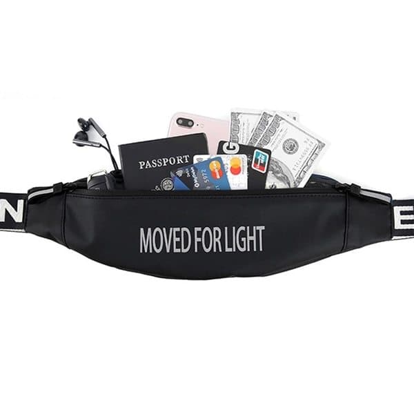 Materiaali, jota käytämme tähän vyölaukkuun, on erittäin joustavaa, jotta saisit mukavasti laukkuun kaiken tarvitsemasi.
