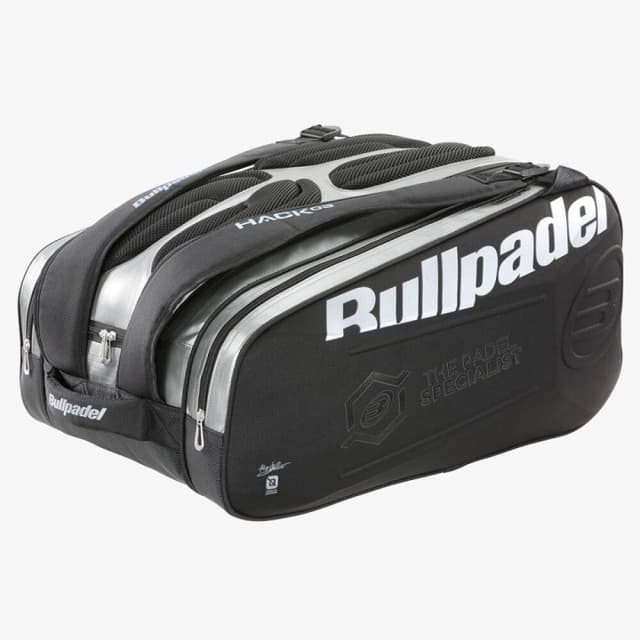 Tyylikäs Bullpadel Hack -mailalaukku on varustettu isolla päälokerolla, jossa kuljetat tarvikkeesi kätevästi pelikentälle. Hack-padellaukku täydentää täydellisesti uutta Hack 03 -padelmailaa. Siinä on kaksi lämpöosastoa, joihin mahtuu neljä padelmailaa, sekä erillinen ja tuuletettu lokero vaatteille ja jalkineille. Ammattilaispelaaja Paquito Navarron suunnittelemassa padellaukussa on jäykempi kuori sivuilla, joka tarjoaa paremman suojan tarvikkeille. Lisäksi selän muotoilussa on vaahtomuovikappaleita, jotka takaavat maksimaalisen ilmanvaihdon ja mukavuutta kantamiseen.