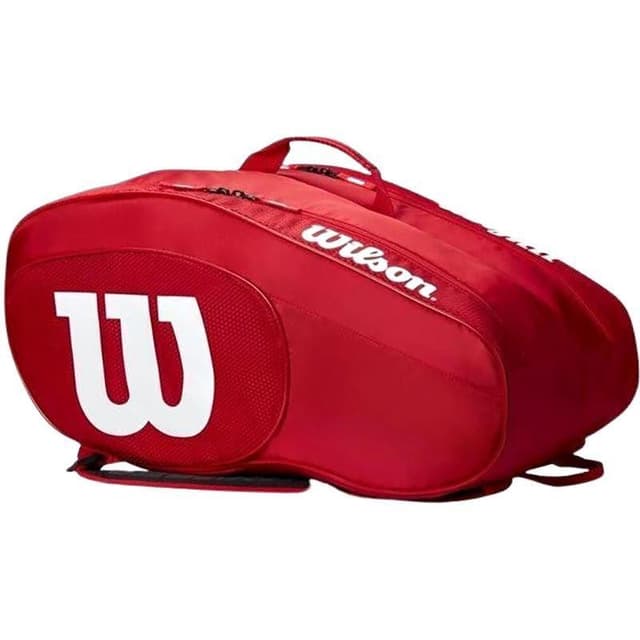 Tosi kiva padel-laukku Wilsonilta. Pussissa on lämpöpussi, isompi lokero vaatteille ja asusteille, kenkäpussi, pienempiä lokeroita arvotavaroille ja kaksinkertaiset olkahihnat, joilla laukku on helppo kantaa.