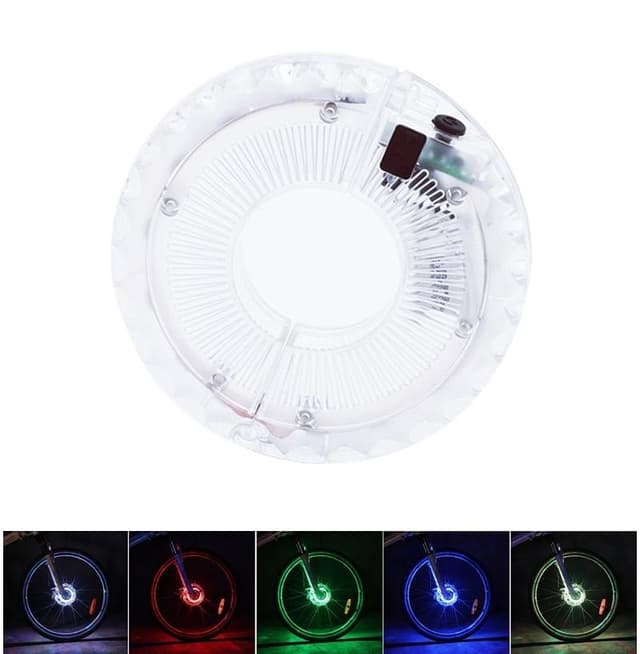 Suunniteltu sekä polkupyörän koristeeksi että turvalliseen ajoon yöllä, asenna vesitiivis valonapa polkupyörän pyörän napaan. 7 väriä ja 18 tilaa ja jopa 12 tunnin akunkesto.