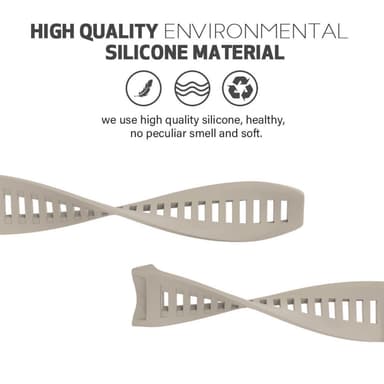 Laadukas silikoni mukavuuden takaamiseksi: Tämä kellon ranneke on valmistettu korkealaatuisesta silikonista, ja se on joustava ja kulutusta kestävä, joten se on täydellinen jokapäiväiseen käyttöön ja urheiluun. Mukava istuvuus tekee siitä ihanteellisen pitkäaikaiseen käyttöön.