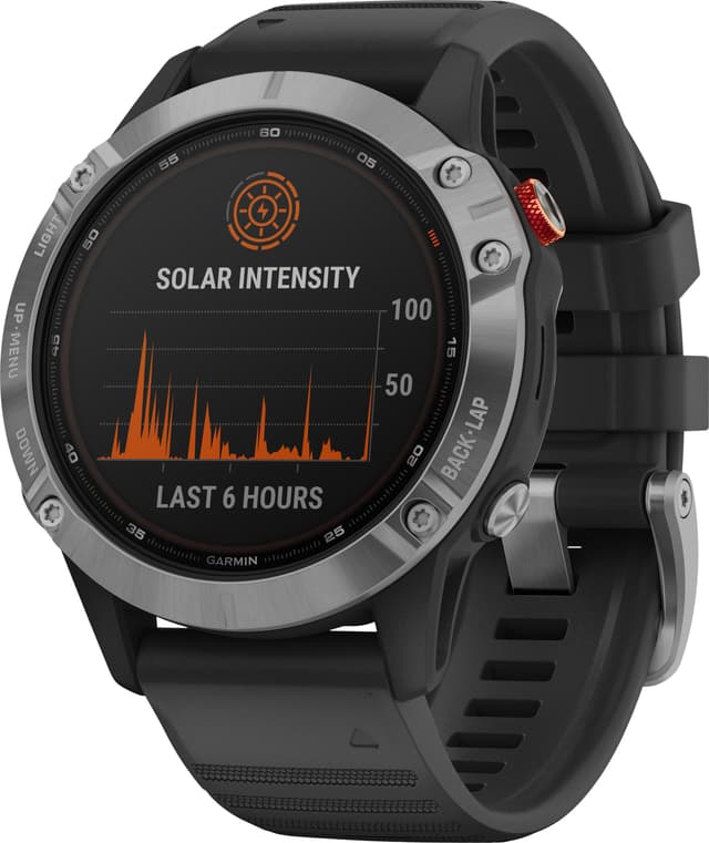 Garmin Fenix 6 Solar -urheilukello tarjoaa kaikki Fenix 6 -urheilukellon ominaisuudet, kuten luotettavan sykkeen-, unen- ja kuukautiskierronseurannan sekä 10 ATM vedenkestävyysluokituksen. Lisäksi urheilukello on varustettu aurinkolataustoiminnolla.