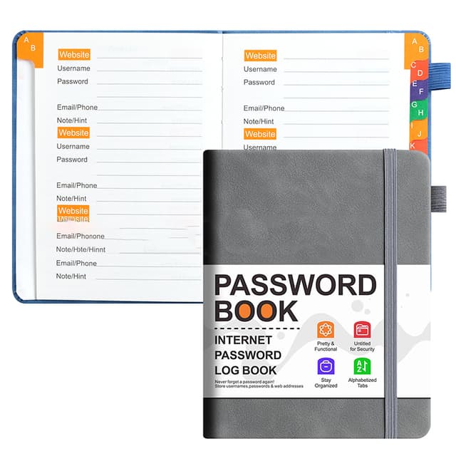 Salasanamuistikirja lukolla - A5 PU-nahkalehti Harmaa