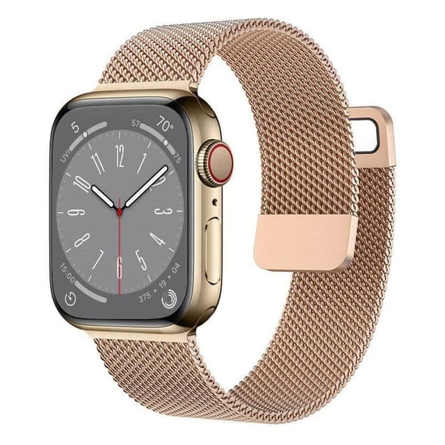 Marketplace-tuote. Kumppanimme myymä ja toimittama tuote ja saatavilla vain verkkokaupasta. Jos sinulla on kysyttävää tuotteesta, haluat palauttaa tai vaihtaa tilaamasi Marketplace-tuotteen, tulee sinun ottaa yhteyttä tuotteen myyneen kumppanin asiakaspalveluun kirjautumalla sisään verkkokauppaamme ja käyttämällä yhteydenottoa omien sivujen tilaushistorian kautta. Tuotetta ei voi palauttaa Gigantin myymälään eikä Gigantin asiakaspalvelu pysty neuvomaan tuotteeseen liittyvissä kysymyksissä. Kaikki toimitus- ja maksutavat eivät ole saatavilla Marketplace-tuotteissa. Myyjä:43,90 €34,98 €alv. 0%Vain verkossa | Myyjä muu kuin Gigantti991561Rannekoru ruostumatonta terästä Apple Watch 8 (45mm) - Champagne