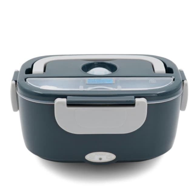 Sähköinen lounasrasia Oxford-kangaspussilla ja ruostumattomasta teräksestä valmistetulla haarukalla ja lusikalla Harmaa