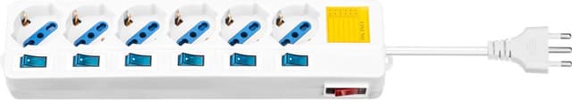 Haarapistorasia kytkimellä, 6 pistorasiaa, 1,5 m, valkoinen