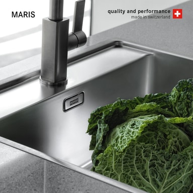 Modernissa Franke Maris -tiskialtaassa yhdistyy minimalistinen muotoilu, toimivuus sekä hygieeniset ominaisuudet. Neliömäisen ja pyöristetyillä reunoilla varustetun tiskialtaan kulmien säde on 16 mm, joka takaa helpon puhdistuksen ja näin ollen parhaan mahdollisen hygieniatason. Puolimattaviimeistely sekä teräksinen ylivuotoaukko ja allassiivilä tarjoavat tiskialtaalle korkealuokkaisen ulkoasun. Tiskialtaan asennus on erittäin vaivatonta.