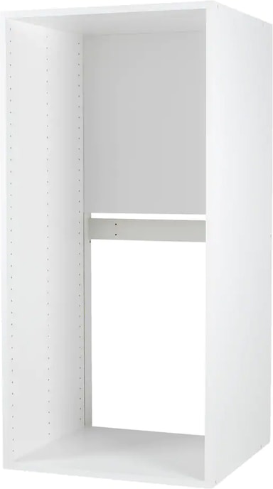 Integroitaville tuotteille mukautettu 18 mm puukuitulevystä valmistettu korkeakaapin runko valkoisella melamiinikalvolla.