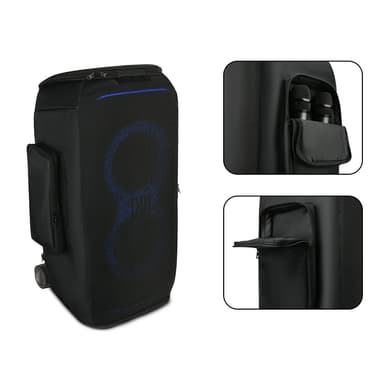 Räätälöity muotoilu: Tämä kotelo on suunniteltu erityisesti JBL Partybox Stage 320:lle ja varmistaa täydellisen ja turvallisen istuvuuden. Se suojaa kaiuttimesi pölyltä, naarmuilta ja pieniltä kolhuilta kuljetuksen ja säilytyksen aikana.