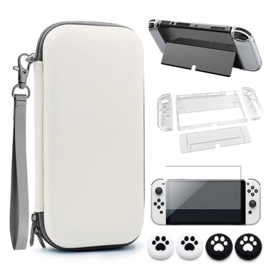 Täydellinen suoja: Tämä Nintendo Switch OLED -kantolaukku tarjoaa täydellisen suojan konsolillesi ja lisävarusteillesi. Kova EVA-kuori suojaa Switch OLED -laitettasi kolhuilta, naarmuilta ja pölyltä matkoilla tai varastoinnissa. Mukana toimitettu karkaistu lasinen näytönsuoja suojaa näyttöä naarmuilta ja sormenjäljiltä, kun taas peukalosuojat parantavat hallintaa ja mukavuutta pelatessa. Tämä paketti varmistaa, että Switch OLED pysyy turvassa ja suojattuna, olitpa sitten työmatkalla, matkoilla tai yksinkertaisesti säilytät sitä kotona. Se on täydellinen ratkaisu pelaajille, jotka haluavat pitää konsolinsa moitteettomassa kunnossa. Se on yhteensopiva Nintendo Switch OLED -konsolin kanssa.
