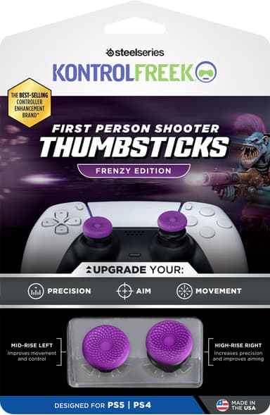 Kontrol Freek FPS Frenzy PS5 -peukalogripit on suunniteltu parantamaan tähtäystä ja liikkeitä FPS-peleissä. Niissä on kaksi eri korkeutta: keskikorkea grippi parantaa vasemman tikun hallintaa ja korkea grippi parantaa oikean tikun tarkkuutta.Tutustu ominaisuuksiin