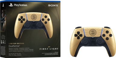 PS5 DualSense 007 First Light Limited Edition -ohjain parantaa pelikokemusta kultaisella muotoilulla, haptisella palautteella, mukautuvilla liipaisimilla, Bluetooth-yhteydellä ja sisäänrakennetulla mikrofonilla.Tutustu ominaisuuksiin