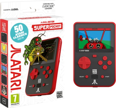 Kannettavassa HyperMegaTech Atari Super Pocket -pelilaitteessa on 50 klassista peliä. Siinä on 320x240 pikselin IPS-näyttö, USB-C-lataus ja yli 4 tunnin akkukesto. Sisäänrakennetun Evercade-kasettituen ansiosta voit käyttää yli 600 lisäpeliä.Tutustu ominaisuuksiin