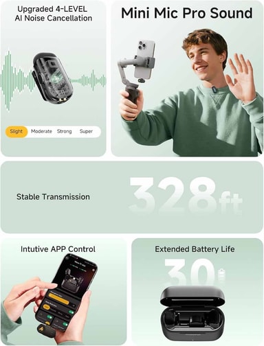 Langaton Maono PC2 Mini -mikrofoni tuottaa kirkkaan 48 kHz/16-bittisen studiolaadun äänen. Siinä on 4-tasoinen tekoälytteinen melunvaimennus, jopa 30 tunnin akkukesto, ja se toimii helposti puhelimien, tablettien ja tietokoneiden kanssa Lightning- tai USB-C-liitännän kautta, mikä tekee siitä täydellisen vloggaamiseen, striimaukseen ja liikkuvaan äänitykseen.