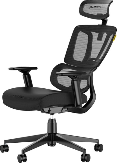 Elements FRX 300 Mesh -pelituolissa on 1D-käsinojat sekä säädettävä 2D-niskatuki. Pelituolin korkeus on säädettävissä, ja se kantaa enintään 130 kg painon.Tutustu ominaisuuksiin