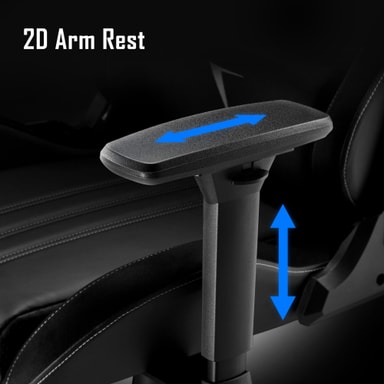 2D-käsinojat tarjoavat monipuoliset säädöt, joita voi liikuttaa pystysuunnassa korkeuden mukauttamiseksi sekä vaakasuunnassa eteen- ja taaksepäin, varmistaen optimaalisen asennon ja mukavuuden intensiivisten pelisessioiden aikana.