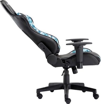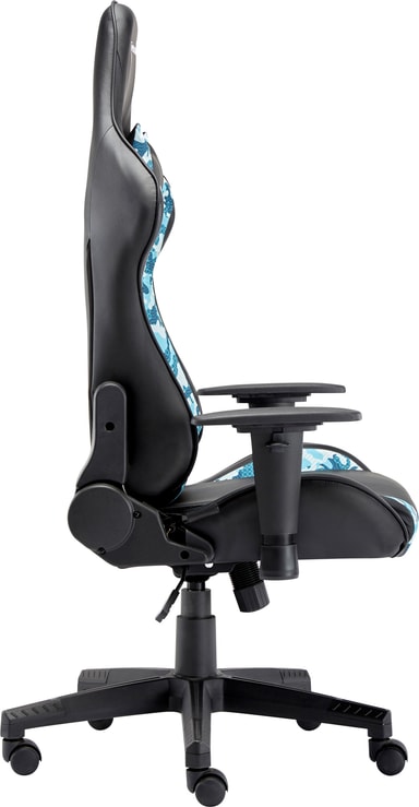 Tyyli ja kuviointi: Mustassa pelituolissa on Blue Camouflage -kuviointi.