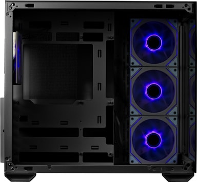 Kotelo sisältää 270° täysnäkymän karkaistut lasipaneelit saumattomalla viisteellä, tarjoten selkeän näkymän järjestelmäsi komponentteihin ja parantaen sen visuaalista vetovoimaa.
