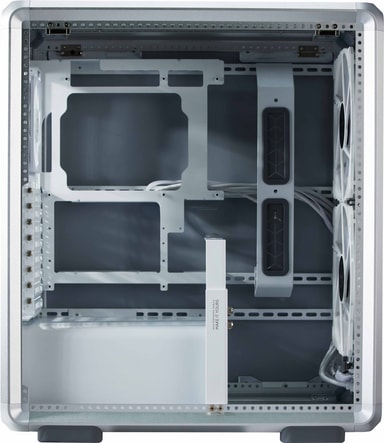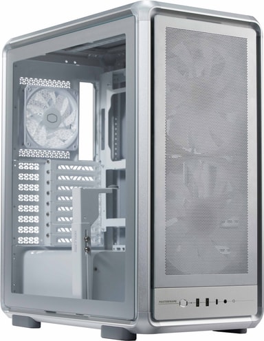 MasterFrame 500 Mesh tuo esiin rohkean, avokehyksisen estetiikan: alumiinista valmistettu rakenne on luja ja kevyt. Karkaistusta lasista valmistettu sivupaneeli esittelee komponenttisi, ja modulaarinen asettelu tekee räätälöinnistä ja päivityksistä helppoa. Työkaluton paneelien irrotus ja sisäänrakennettu GPU-tukikiinnike helpottavat asennusta.