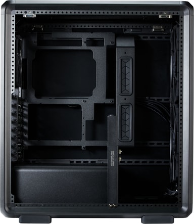 Korkean suorituskyvyn jäähdytystä varten MasterFrame 500 Mesh sisältää valmiiksi asennettuna kaksi 200 mm etutuuletinta ja yhden 120 mm takatuulettimen optimaalisen ilmavirran varmistamiseksi. Mesh-paneelit maksimoivat ilmanvaihdon, ja nestejäähdytys on tuettu edessä, ylhäällä, takana ja sivulla jopa 420 mm jäähdyttimille. Vaativille lämpökuormille suunniteltu kotelo pitää komponentit viileinä kovassakin rasituksessa.