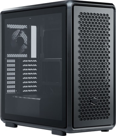 MasterFrame 500 Mesh tuo esiin rohkean, avokehikkoisen alumiinista valmistetun ilmeen, joka on sekä jäykkä että kevyen kestävä. Karkaistu lasisivupaneeli nostaa komponentit esille, ja modulaarinen rakenne tekee kustomoinnista ja päivityksistä helppoa. Työkaluton paneelien irrotus ja sisäänrakennettu GPU-tukiteline yhdistävät tyylin ja käytännöllisyyden.