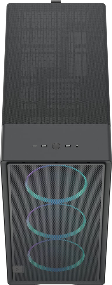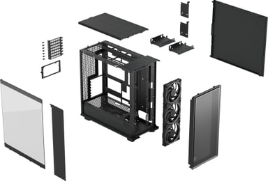 Fractal Design Epoch XL TG -PC-kotelossa on pelkistetty muotoilu ja ilmankiertoa parantava verkkomainen etupaneeli. Mukana on kolme Momentum 12 -tuuletinta, ja kotelo tukee suuria näytönohjaimia sekä jopa 360 mm jäähdyttimiä, joten se sopii erinomaisesti huipputehokkaisiin kokoonpanoihin. Huomaamattomat yksityiskohdat, kuten pehmeä kangasvetolenkki ja alumiinimerkki, auttavat sitä sulautumaan peliasetelmaan.