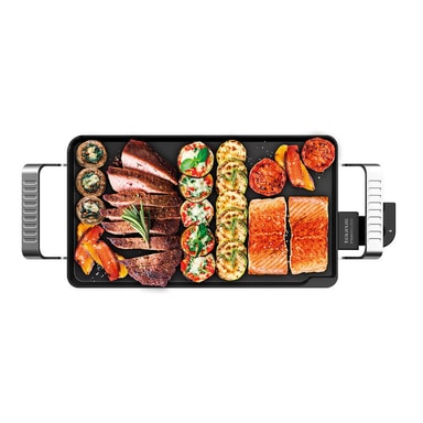 Taurus Steakmax 2500: n irrotettavan termostaatin ja virtajohdon ansiosta voit kokata pöydällä tai ottaa grillin minne haluat. Silitysraudat ovat ergonomisia ja viileitä, joten et polta itseäsi ruoanlaiton tai kuljetuksen aikana.