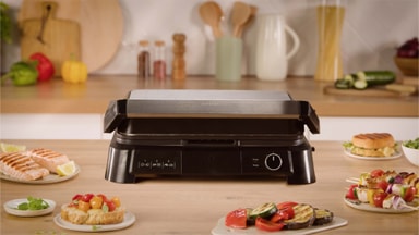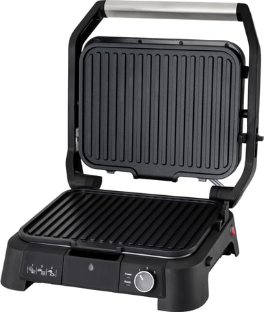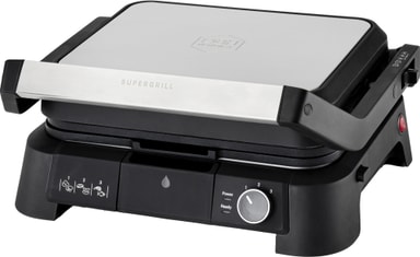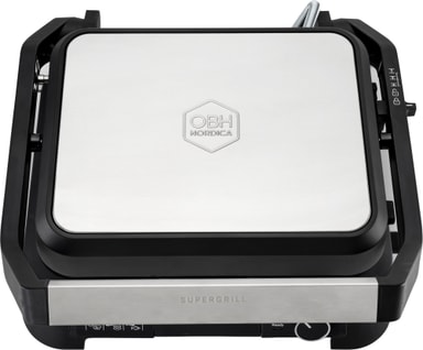 OBH Nordica SuperGrill -pöytägrilli mahdollistaa grillauksen, paistamisen ja ruskistamisen 600 cm² pinnalla, ja siinä on avattava tasorakenne, tarttumaton pinnoite, konepestävät levyt, säädettävä termostaatti ja lämpöä kestävät sivut.Tutustu ominaisuuksiin