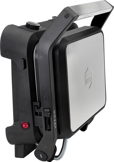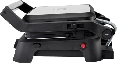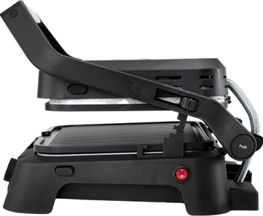 Grillissä on kuumuutta kestävät sivut lisäturvallisuuden takaamiseksi ja säädettävä grillikorkeus, joka varmistaa tasaisen kypsennyksen ilman, että herkät ruoat litistyvät.